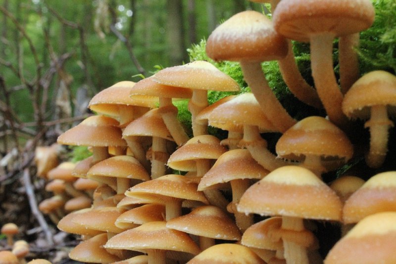 (+) der Gifthäubling wächst tendenziell nicht ganz so massig-büschelig wie das Stockschwämmchen