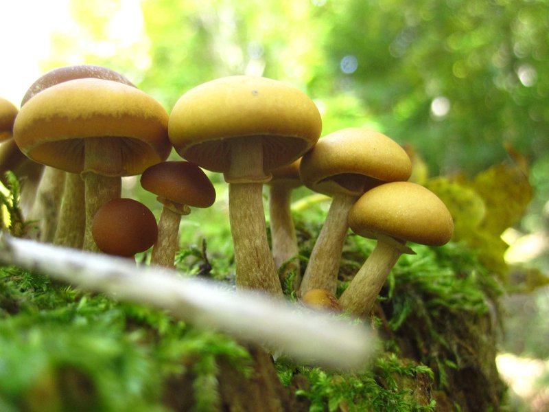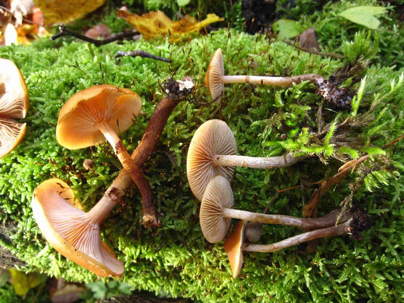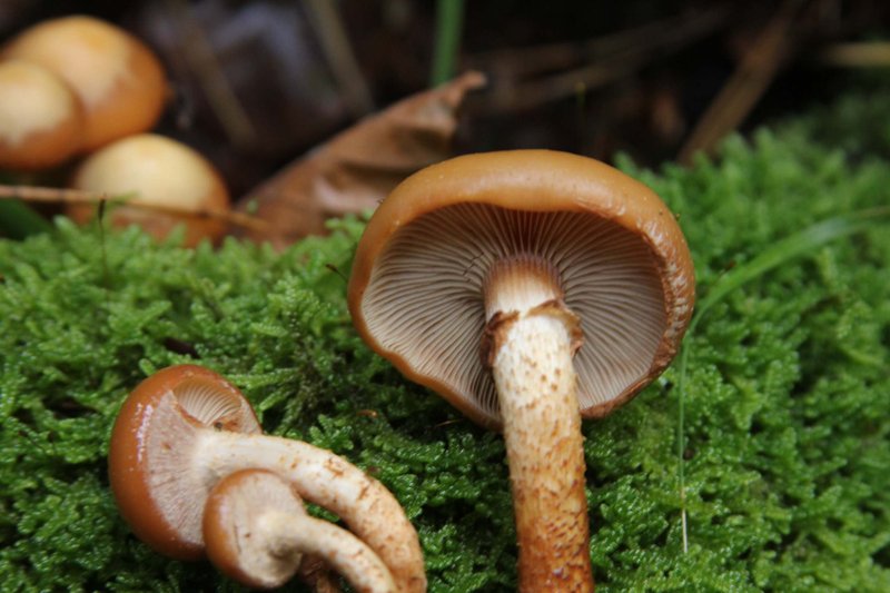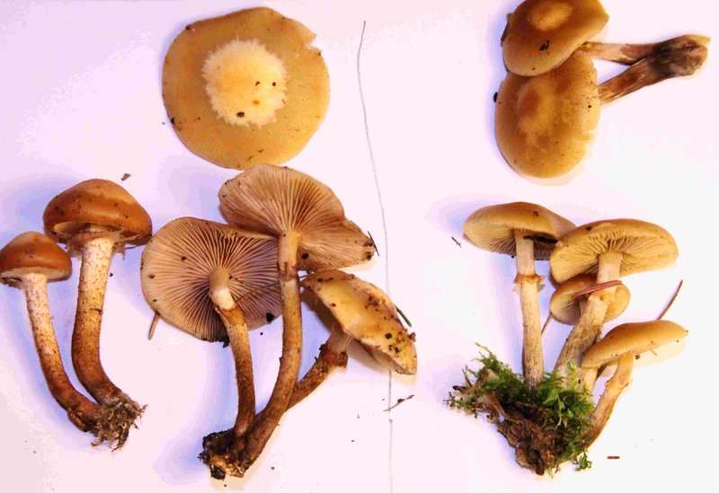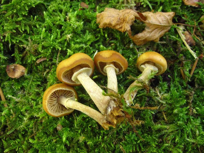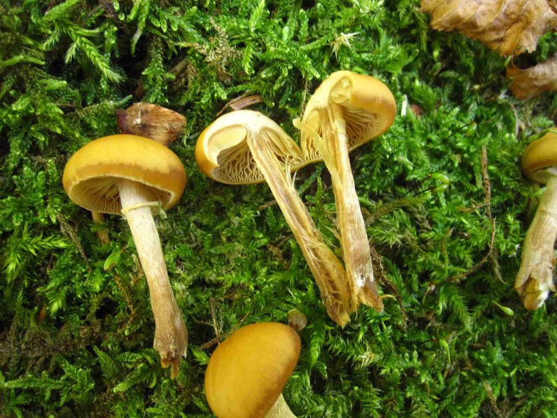 Man beachte den hygrophanen Hut der beiden von oben gezeigten Gifthäublinge, der fast genau so gefärbt ist wie beim Stockschwämmchen! Dieses Merkmal kann die beiden Arten also nicht klar trennen!