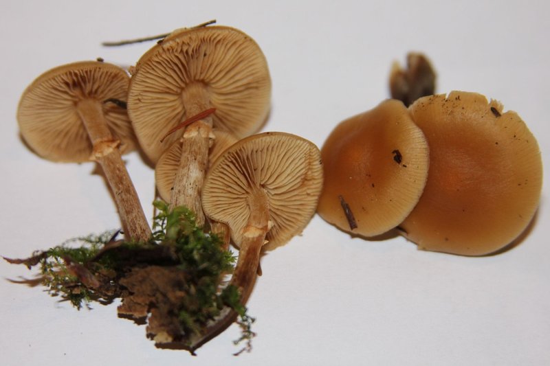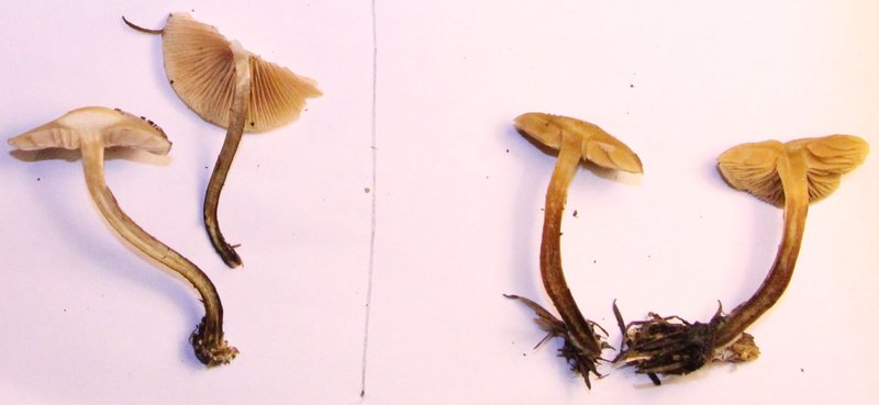 Die an Funstelle 1 gefundenen Gifthäublinge im Vergleich zu den im gleichen Wald gefundenen Stockschwämmchen, zu Hause als Vergleichsbilder fotografiert: