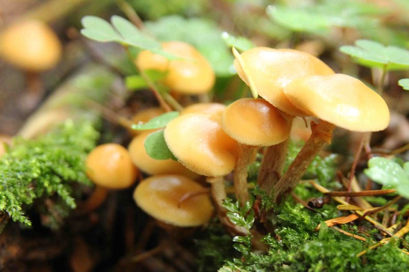 Die oben gekennzeichneten Gifthäublinge am Originalstandort, schön für die Fotosession angeleuchtet: