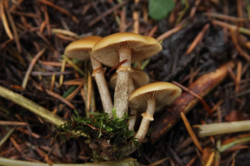 Könnte er es diesmal endlich sein, der Gifthäubling, bzw. einer seiner Brüder aus der Gruppe um Galerina marginata? Auf teilweise vergrabenem Nadelwald im Fichtenwald am Boden... Geruch nur wenig wahrzunehmen, evtl. schwach mehlig, Hutdurchmesser meist 2-3 cm. Die Merkmale schienen mir zu passen, was meint ihr?