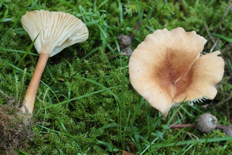 Zum Beispiel diese hübschen Braunen. Vermutlich der Wässrige Milchling, Lactarius serifluus, mit transparenter Milch.