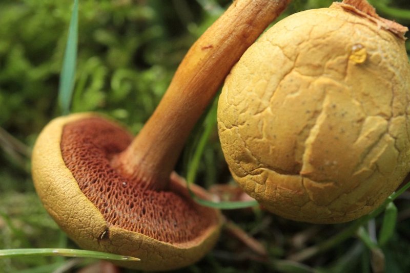 Bei Lärchen stehen erste Goldröhrlinge, Suillus grevillei
