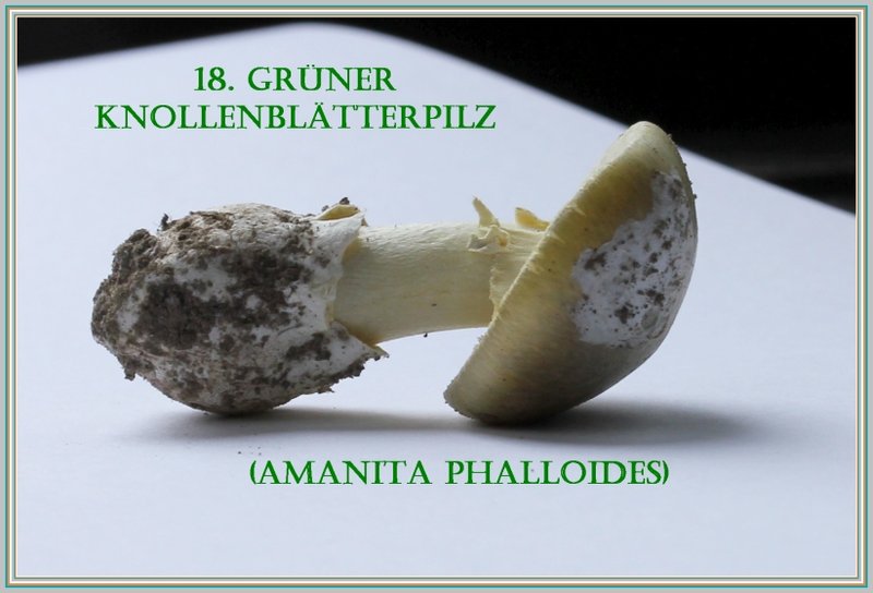 Gesucht war seine Majestät, der Grüne Knollenblätterpilz. Hier hagelten es immerhin Gattungspunkte, und ein paar von euch waren zumindest in der unmittelbar-bös-giftigen, weiß-bescheideten Verwandtschaft angesiedelt... - die grünlichen Töne am Stiel waren - zugegeben - nicht ganz gut zu erkennen...