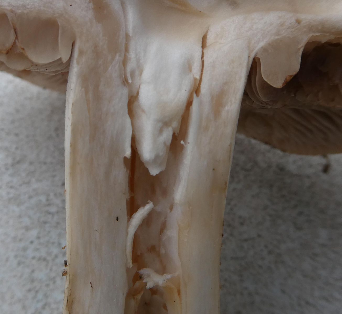 Der Hutfleischzapfen in den Stiel passt zu Hebeloma :