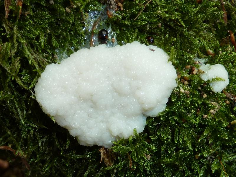 An liegendem Eichenstamm im Moos ein paar Schleimis :