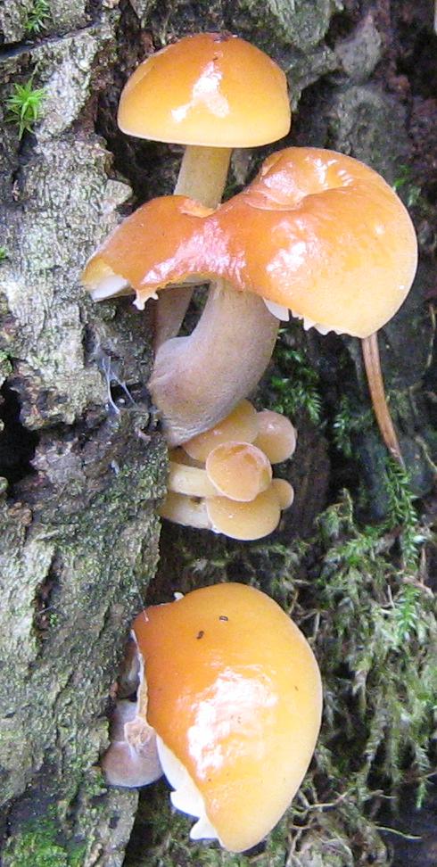 Nach meinen Büchern würde ich sagen : Samtfussrübling –“ flammulina velutipes. Allerdings waren bei diesen Pilzen die Stiele im Verhältnis zum Hut viel dicker als auf den Bildern , vielleicht noch zu jung?