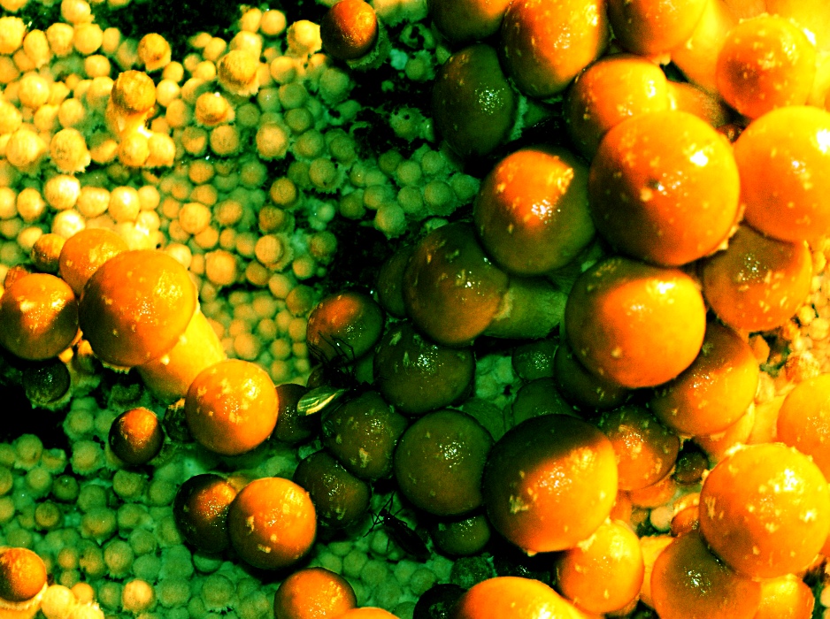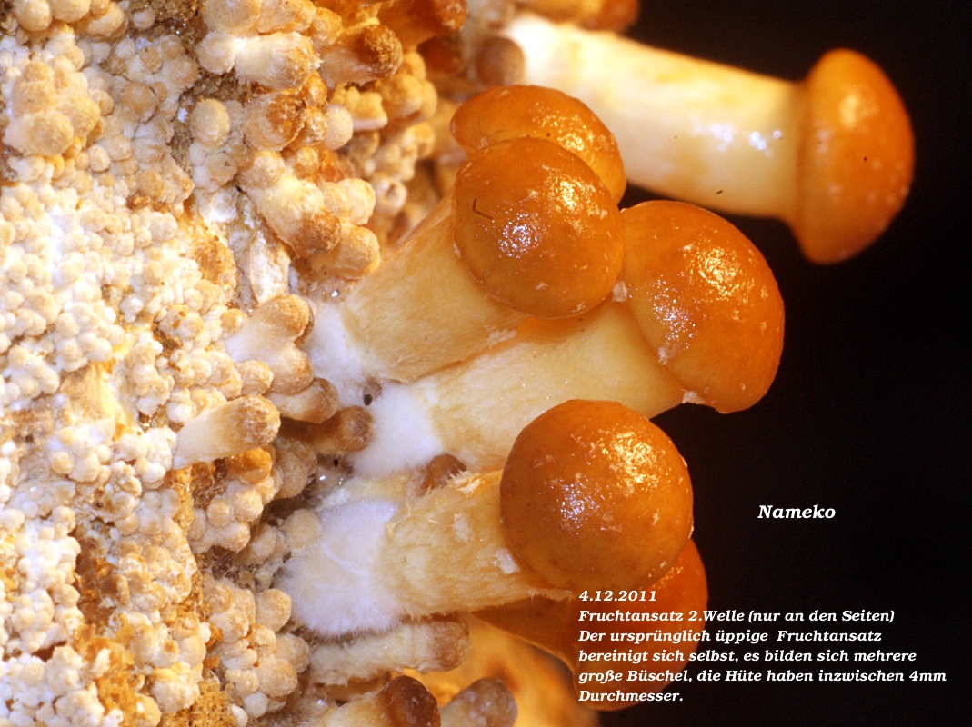 inzwischen sind nur 4 Tage vergangen, die erste Blume wird erwachsen. Bisher sind alle 3 Beutel in bester Verfassung. Auf der gesamten Oberfläche, auch oberen im Luftraum der Beutels drängeln kleine Primordia ans Licht, sie werden sicher nach und nach größer werden. Unser Ziehvater hat uns aber getrennt, der fruchtende Beutel kam ins Bad, die beiden anderen sind noch im Keller, einer noch geschlossen, einer davon oben geöffnet, Sicher will er wissen, was uns besser zusagt.