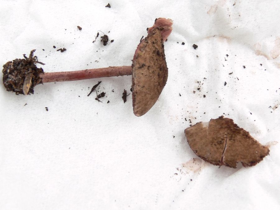 Der Stiel ist fein samtig faserig, ich meine ganz leicht ein Ringzone zu erkennen und auf alle Fälle ein paar Stunden später metallisch, rötlich, glänzend.