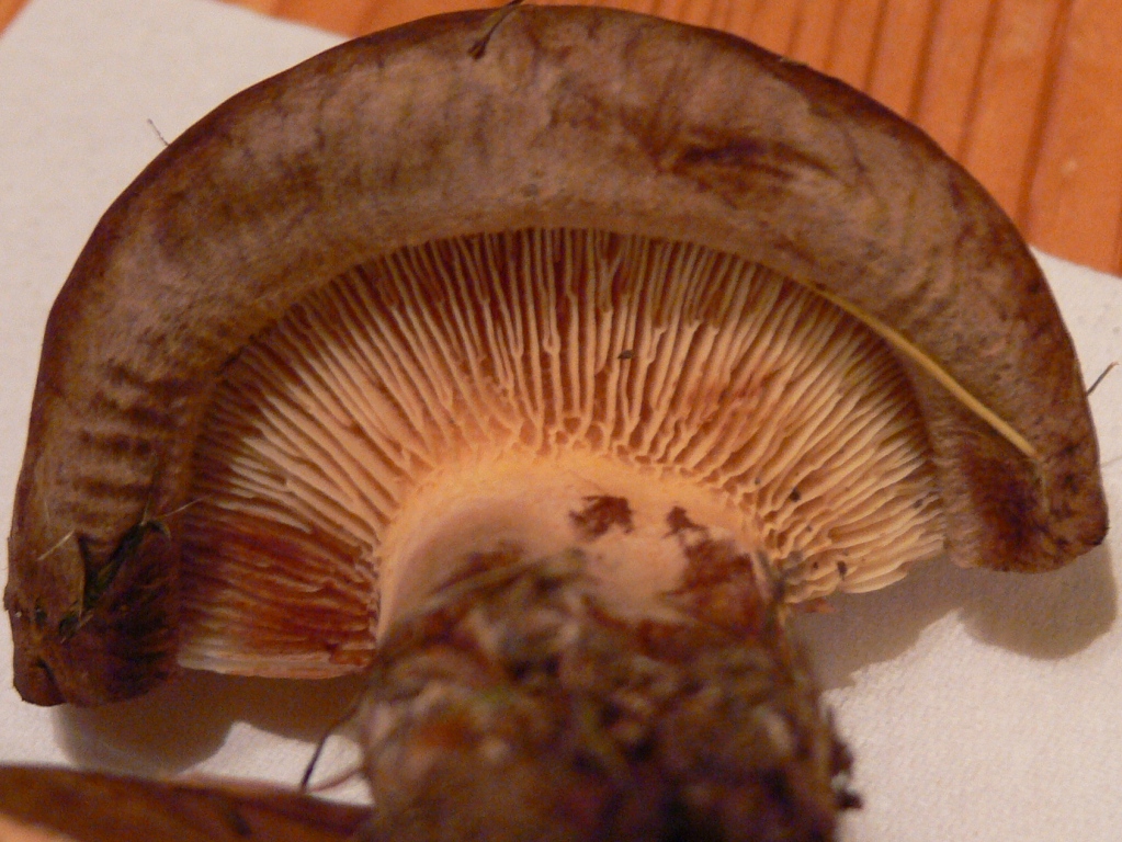 Jetzt geht mir doch der Stift, gestern war ich mit einem Kollegen im Wald Pilze suchen und finden. Leider war bei der Trockenheit nicht viel zu finden, nur der eine Pilz wuchs in rauen Mengen. Mein Kumpel behauptete diesen Pilz schon seit Jahren zu essen und zu kennen. Nichtsdestotrotz wir bei ihm Zuhause in seinem einzigen Pilzbuch nachgesehen, als Kahle Krempling(Paxillus involutus) bestimmt, dieser wird in Dr. Hanns Burckharts Buch "Pilze unserer Heimat" als "häufig gesammelter Speisepilz, doch roh giftig, gekocht von säuerlichem Geschmack, wird nicht immer vertragen" beschrieben.