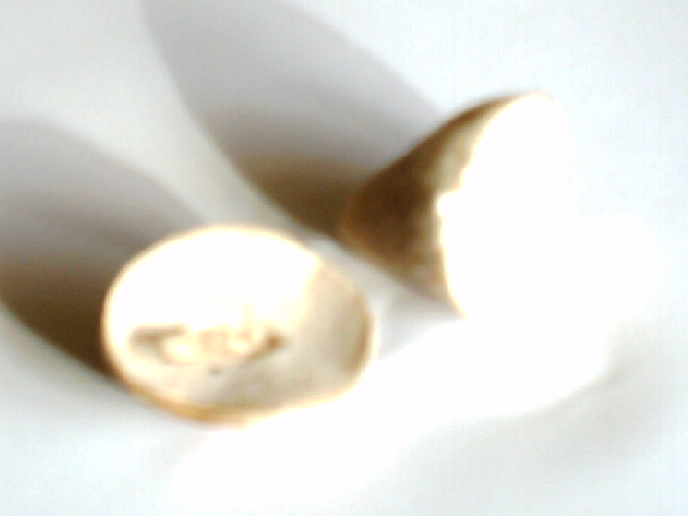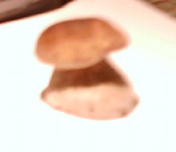 Ich habe ihn natürlich direkt über dem Erdboden abgeschnitten, die Schnittfläche beträgt 4,5cm X 3,8cm , der Stil ist 3,5cm hoch , die Hutfläche beträgt 4,9cm X 3,8cm, der ganze Pilz ist 4,5cm hoch. Auffallend ist dass der Stiel unten sehr dick ist und nach oben Spitz zu läuft.