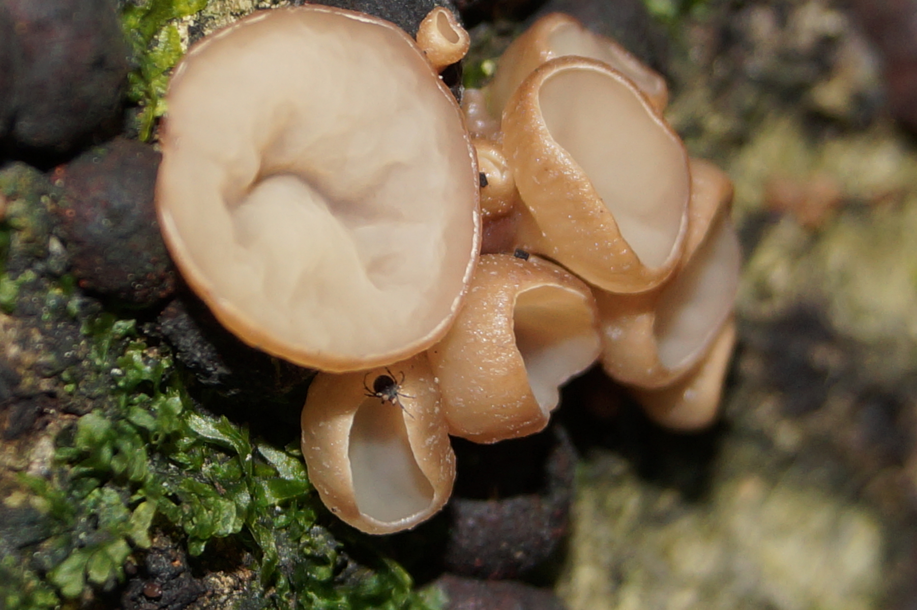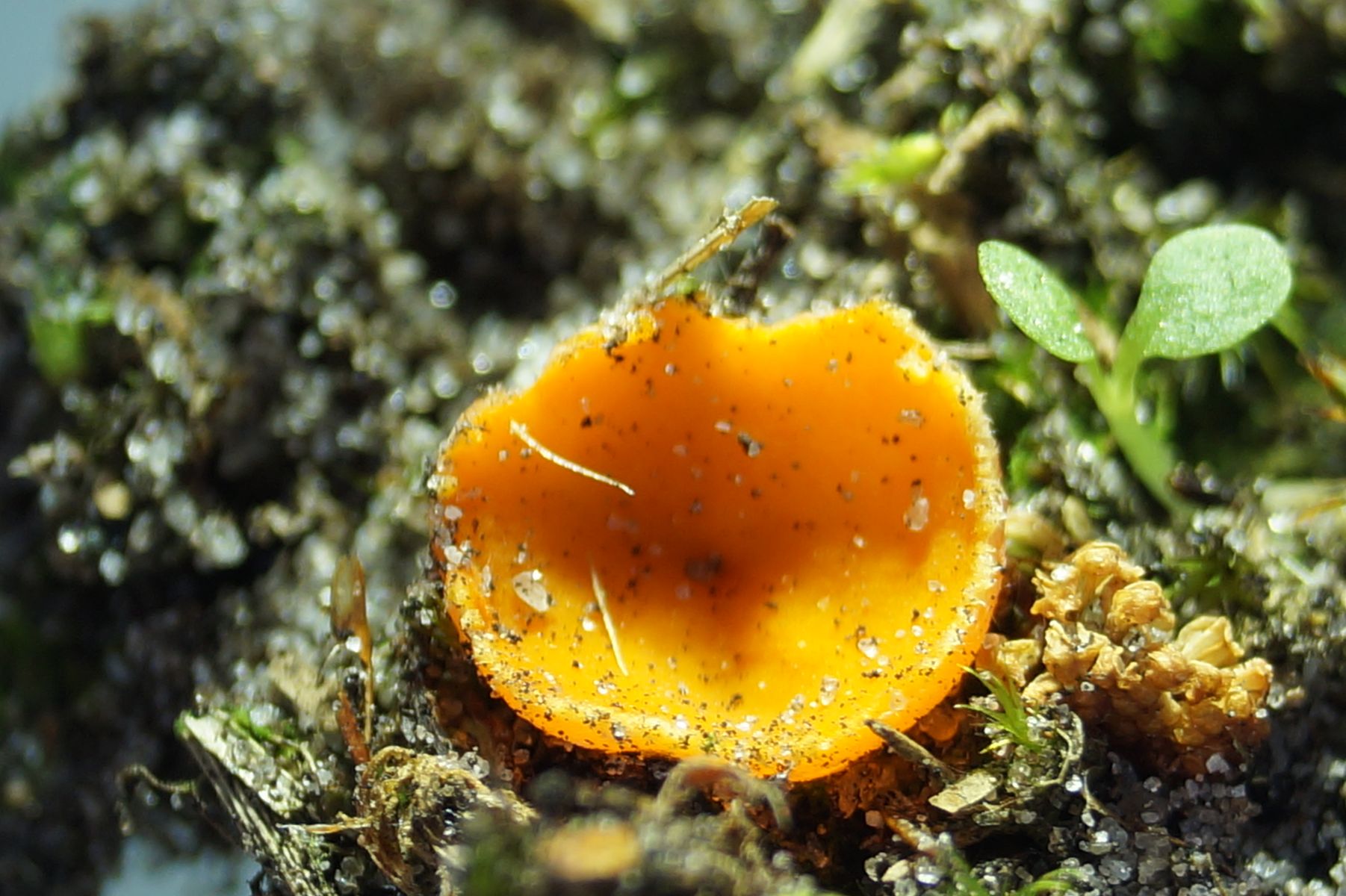 Ich kann leider keine Moose und komme bei dieser Neottiella leider nicht zu einem Ergebnis. Sie hat ein unvollständiges gitterartiges Netz. Sporen sind 19-21× 12-13.