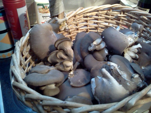 Ähm,...Austern die zweite heute:-) als ich eben nur kurz in die Stadt wollte zum einkaufen steht doch unten bei meinem Bauern bei uns eine Kastanie auch voll mit Austern..und per Zufall hatte ich einen Korb dabei:-) gleich wieder geerntet:-)) und nen dritten Baum hab auch noch gesehen...hier sind die Austern los:-))