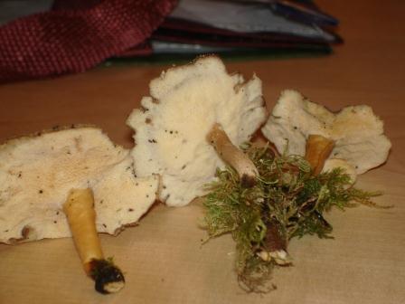 Ich habe heute tatsächlich einen Einsiedler-Wulstling (Amanita strobiliformis) mit ca. 20 cm Hutdurchmesser und 20 cm. Stiellänge gefunden!!! Desweiteren 3 Rotfuss-Röhrlinge (Xerocomus chrysenteron) und ein Frauentäubling (Russula cyanoxantha). War ein feines Znacht, leider keine Fotos. Und dann hat meine Frau heute nach dem Joggen noch einen Rotfüssler gebracht und einen, welche ich nicht kenne: 3-4 cm Durchmesser, weisse Lamellen-Pilz mit angenehmem Geruch (irgendwie nach Camembert [franz. Weissschimmelkäse]), Stiel 4 cm Hutrand leicht eingerollt, Lamellen entfernt stehend.