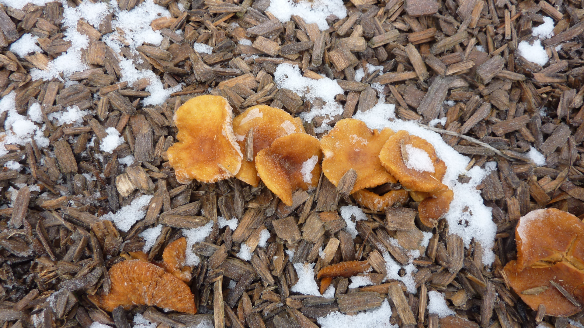 Diese Pilze fand ich am 19.12.2018 auf einen mit Holzschnitzel bedeckten Kinderspielplatz.