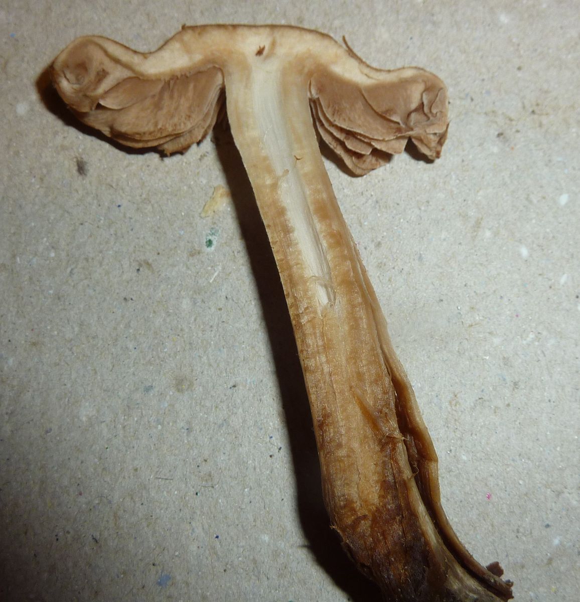 Leider war das Bestimmen der Sporenfarbe nicht möglich, da die Pilze gefroren waren und