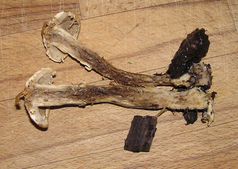 Fundort war in einem typischen Morchelgebiet mit Käppchenmorcheln in unmittelbarer Nähe. Der Pilz wuchs büschelig in einer Gruppe.