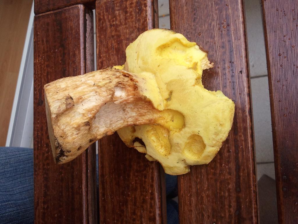 Er ist sehr schwer und ich vermute das es ein Steinpilz ist aber der Schwamm ist mir zu gelb!