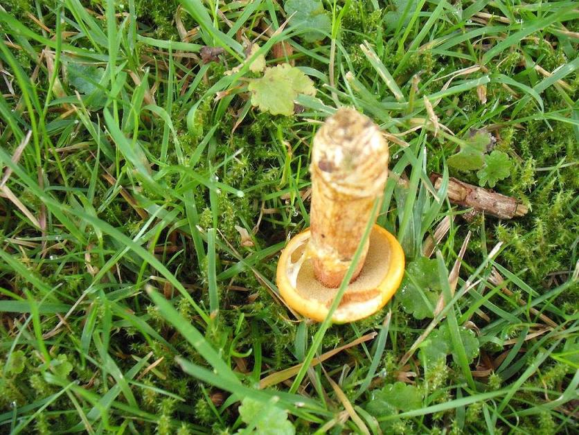Hallo, habe mich eben angemeldet, weil mein Bestimmungsbuch für Pilze recht mager ist. In unserem Garten wachsen recht viele Pilze. Letzten Herbst hatten wir 2 Fliegenpilze, welche wir bestaunten. Was ist das hier für ein Pilz ? Er wächst im Schatten (ganztags) unter einer Lärche. Ist hellorange und unten blasser. Auf die Lamellen habe ich nicht geachtet. Vielen Dank für die Hilfe.