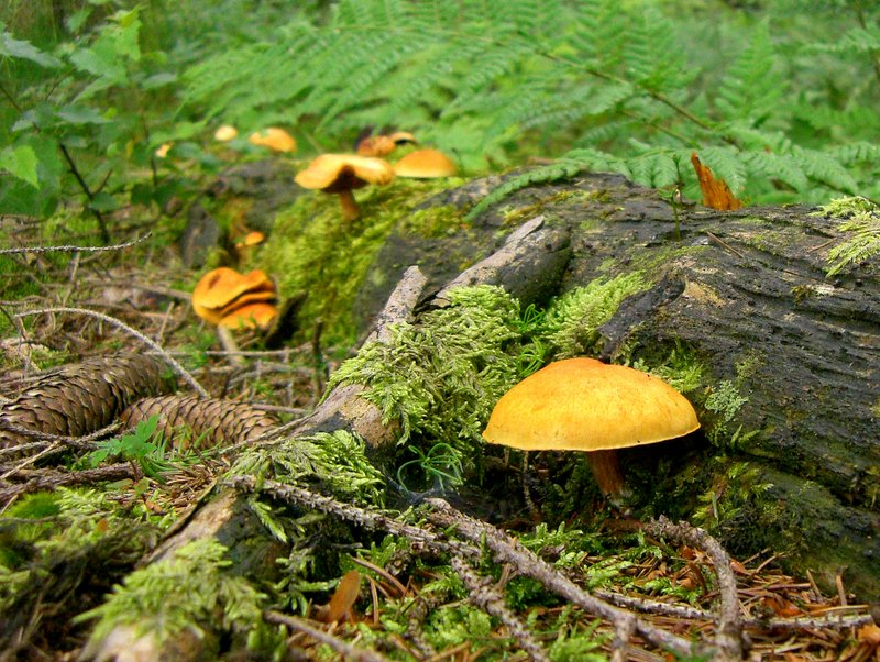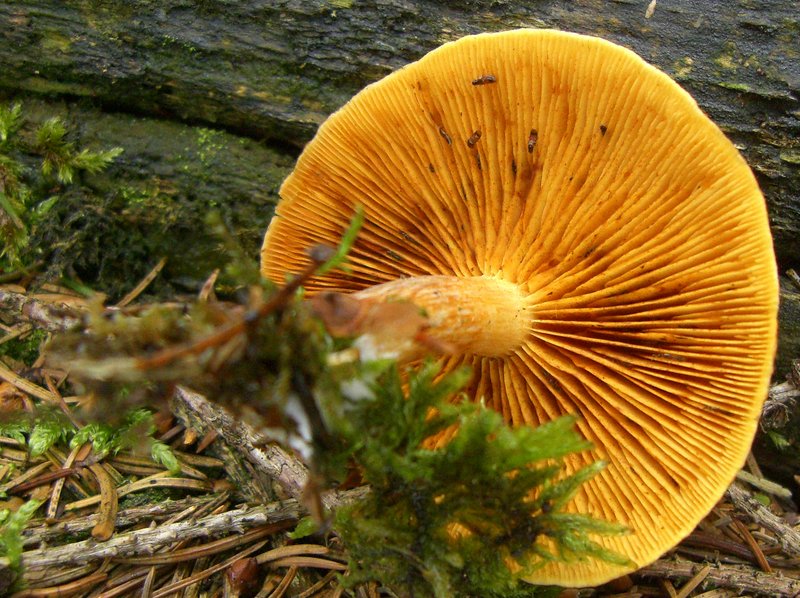 7.Auch eine schöne Farbe, aber nix für ´s Körbchen, geflecktblättriger Flämmling, Gymnopilus penetrans.
