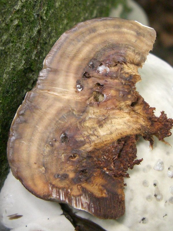 3. Dann kam ich an eine gestürzte Buche. An ihr wuchsen Fruchtkörper eines Pilzes, den ich nicht ohne weiteres einordnen kann.