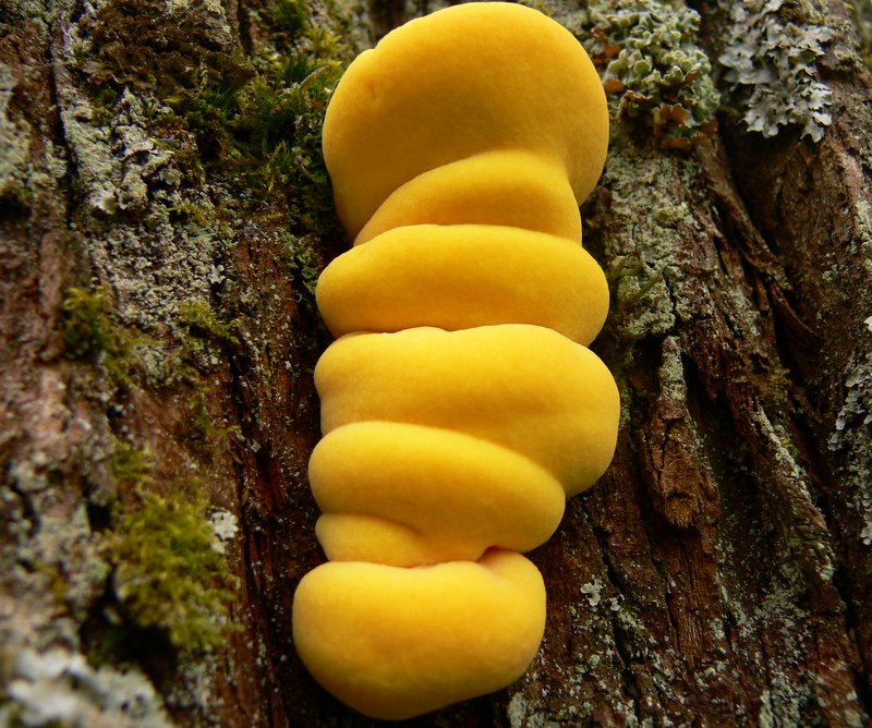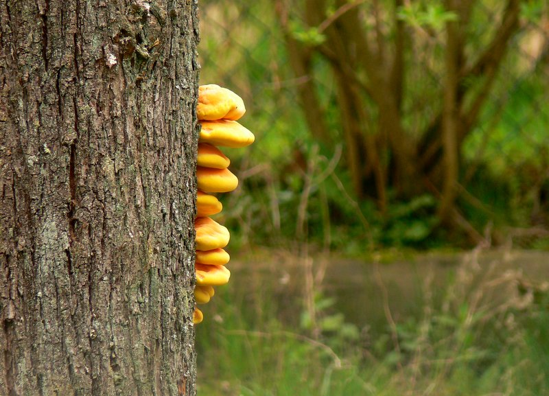 Als ich den hübschen am 21.April das erste mal sah, war er nur ein gelber wulstiger Strich, der durch einen Spalt der Rinde quillt. Heute ist er nicht nur ordentlich gewachsen, sondern hatte noch eine Überraschung für mich, aber seht selbst (Fotos gibt ´s genug