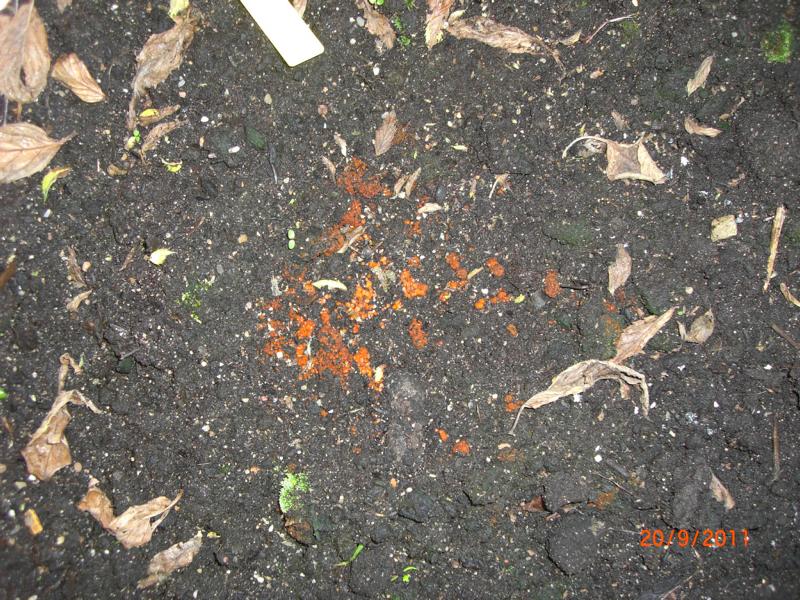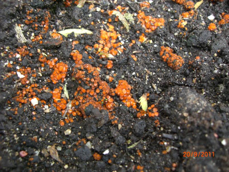 gestern auf meinem Balkon wunderte ich mich über einen orangenen " Rasen" auf der Erde in einem meiner Kübel.