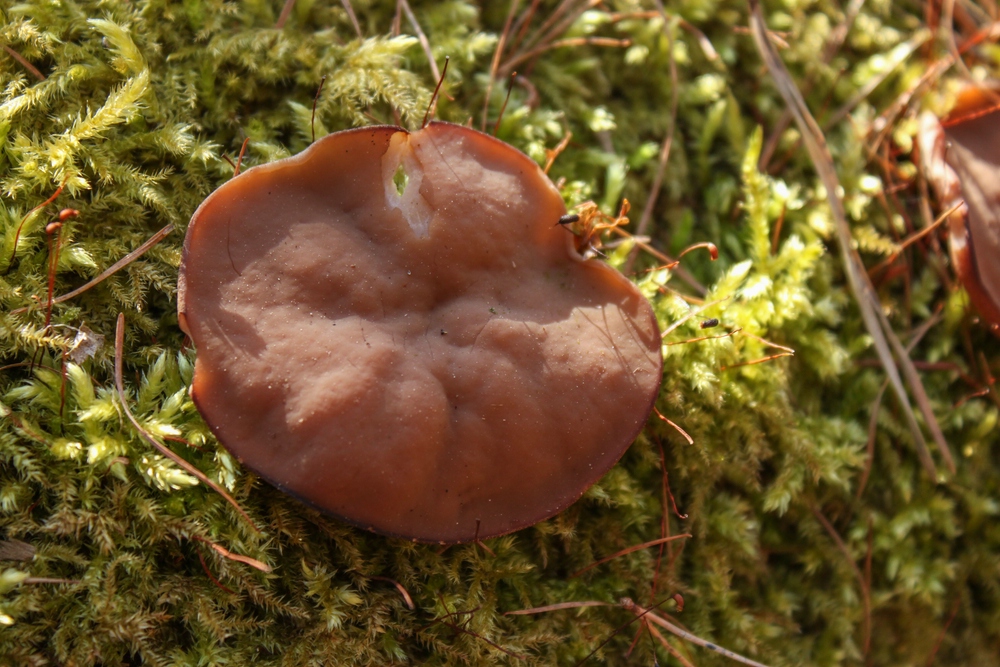 1. Scheibenlorchel, Discina ancilis. Die begrüßte unsere Truppe am Samstag Mittag gleich zu Anfang der kleinen Tour.