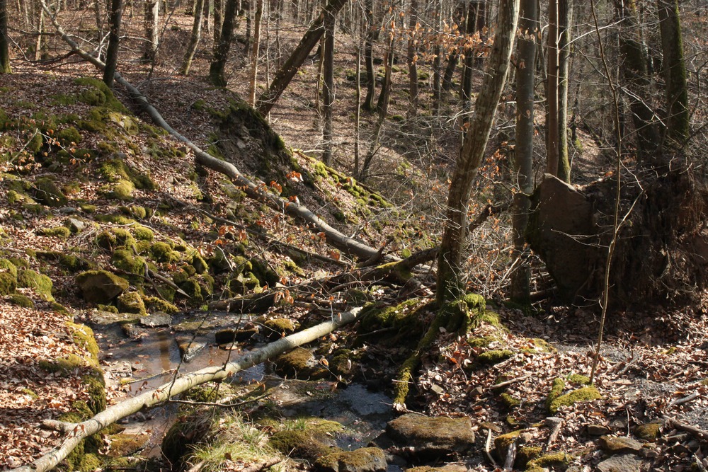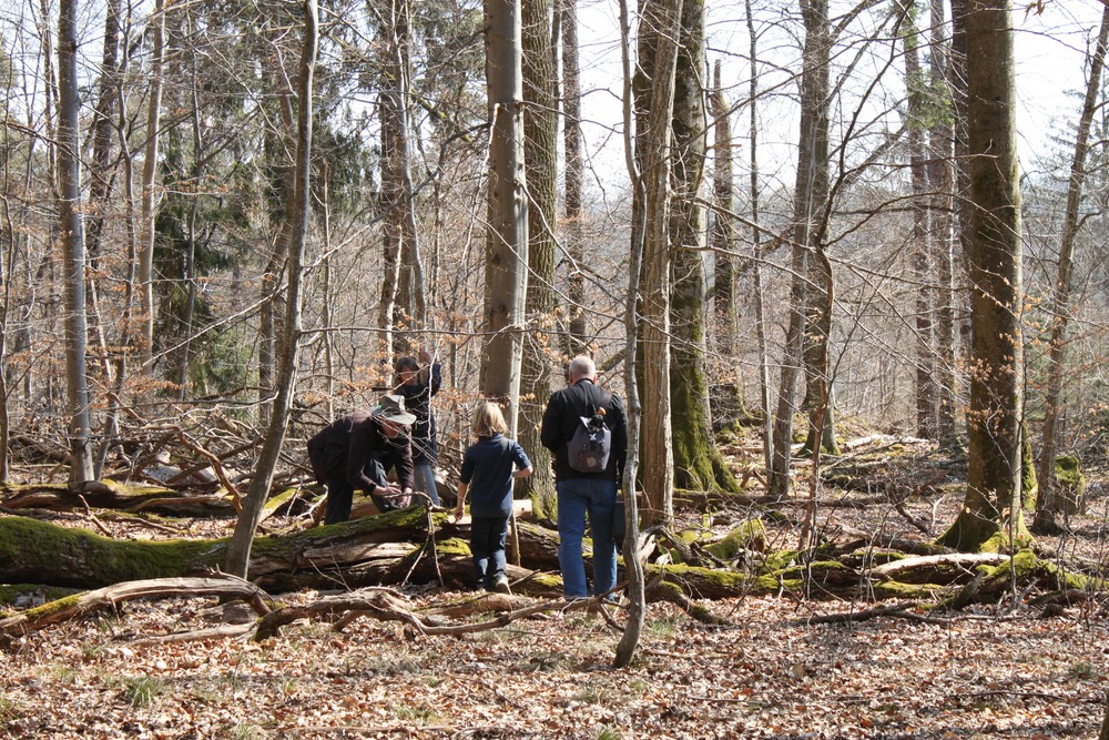 Dann wurden die Kinder (Nina-Lara, Elias und Noah) langsam müde und des rumkriechens auf dem Waldboden überdrüssig. Aber Claudi führte uns an eine Stelle, die sie dann erstmal wieder spannend fanden! Hier gab es nämlich Wasser! ![]()