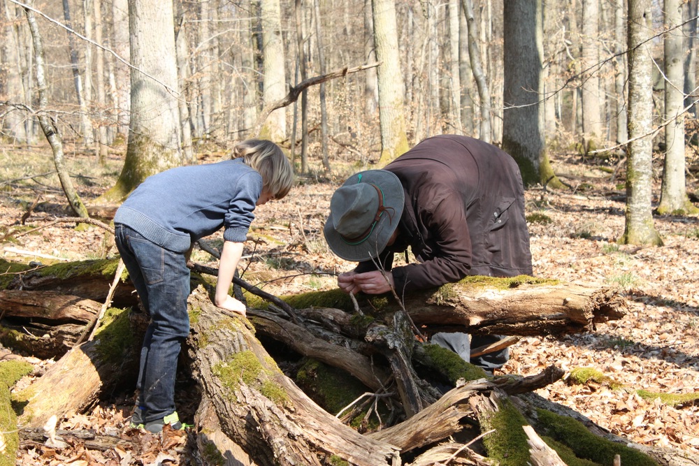 Die Mama kroch derweil weiter auf dem Waldboden herum, während ihre Jungs sich mit dem Bach und dem Klettern die Zeit vertrieben (ja, nasse Füße inklusive)