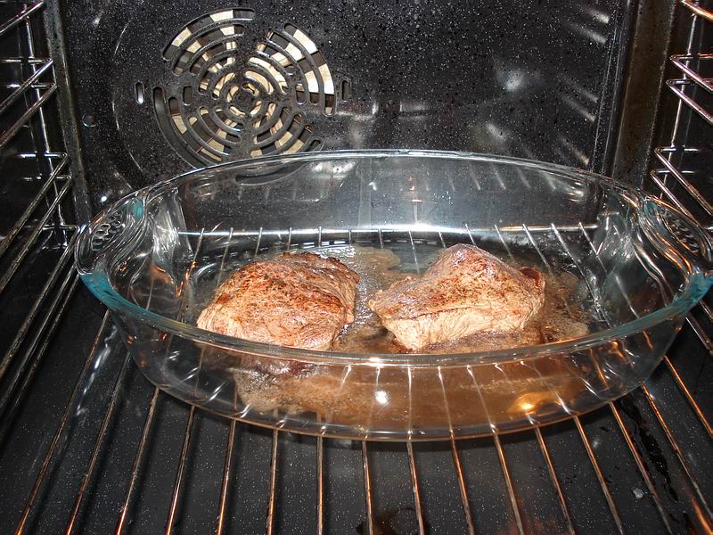 anbraten und mit der vorgewärmten Auflaufform in den Backofen