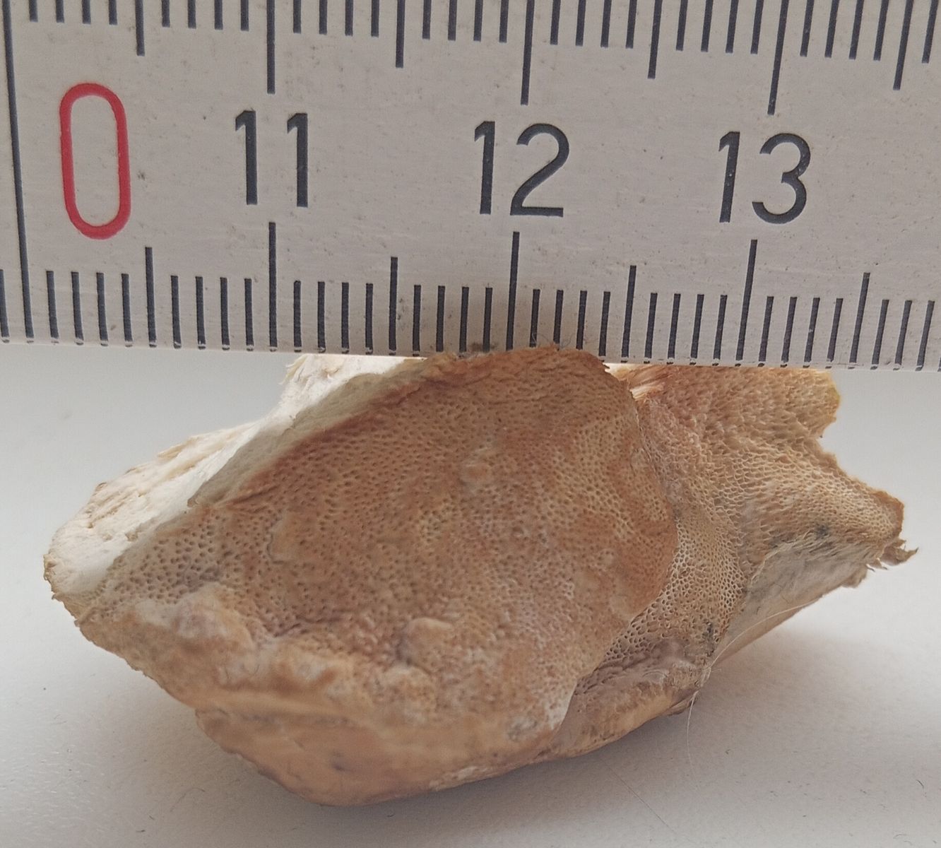 Der Pilz ist etwas gnubbelig gewachsen und von der Oberfläche glatt.