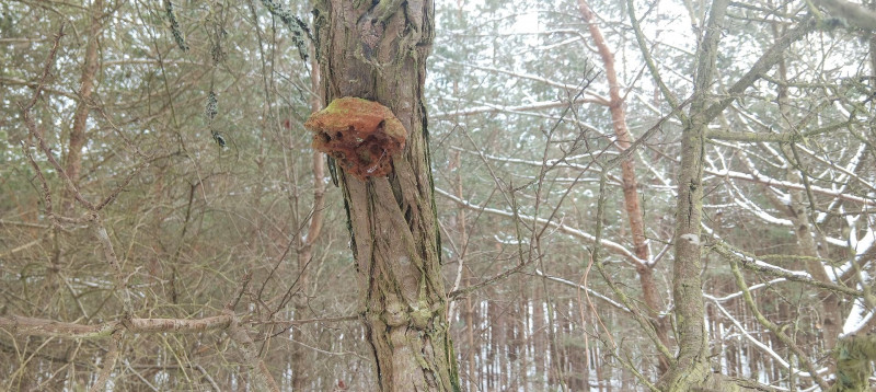 An Schlehe passt da Pflaumen-Feuerschwamm Phellinus tuberculosus.