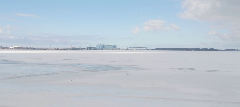 Da haben wir uns das Dilemma mit dem LNG angeschaut. Es kann kein LNG angelandet werden. Zu viel Eis und der Eisbrecher, der extra für den Hafen Mukran von der Nordsee geholt wurde, ist defekt. Hat aber auch einen Vorteil, die Neptune, die kein Landstrom hat, brummt nicht. Dadurch war es ein herrlich ruhiger Spaziergang.