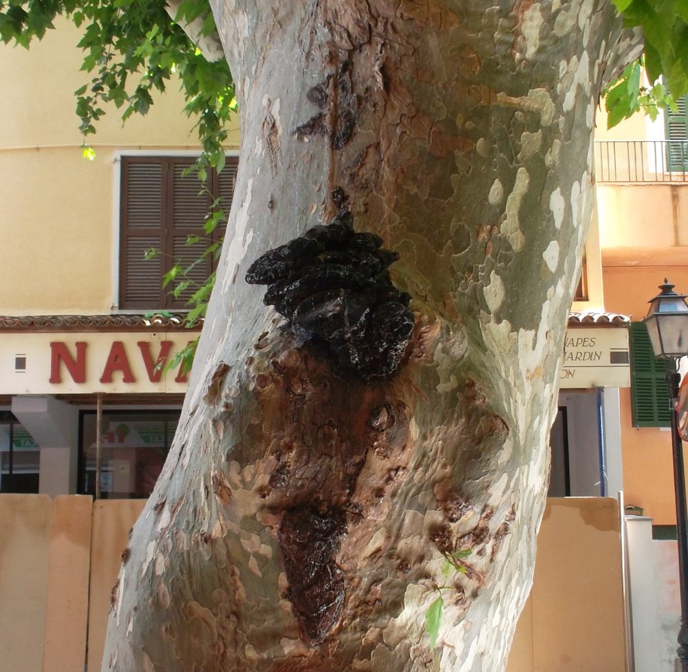 Normalerweise mache ich auch keine Mumienbestimmung. Aber wenn man an sehr vielen schattenspendenden Platanen diese Pilze findet, dann denkt man doch darüber nach. Schade um die sonst so robusten Bäume!