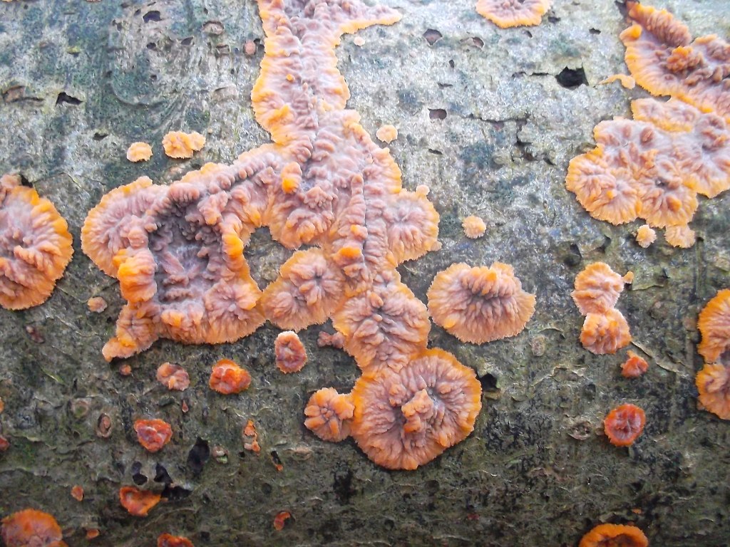 Nicht fotografiert habe ich Goldgelbe Zitterlinge, Drüslinge, Trameten, Schichtpilze und ....!. Aber den Orangeroten Kammpilz, den fotografiere ich immer!