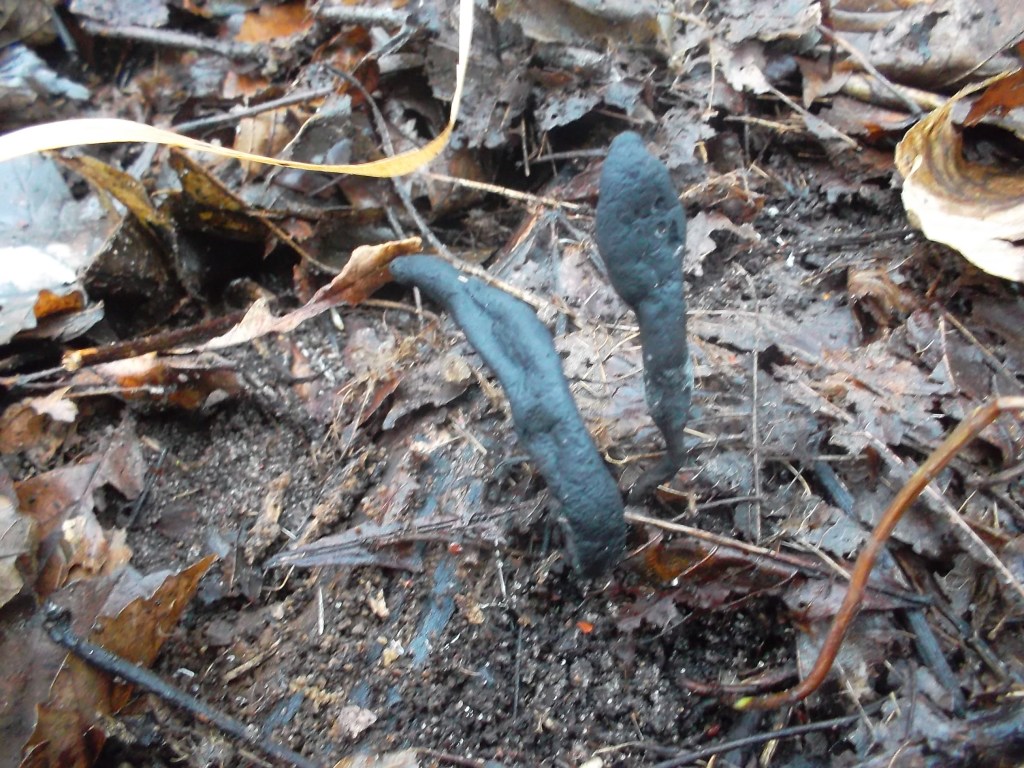 Ja, noch was interessantes, die Langstielige Ahorn-Holzkeule (Xylaria longipes). Die habe ich für das Foto ausgegraben! Die wachsen an der Unterseite vom "vergrabenen" Holz.