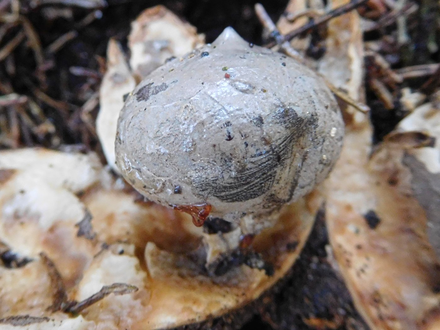 Heute war ich mal wieder beim Erdstern. Leider keine Neuen. Aber der alte Fruchtkörper hat sich so weit verändert, das man einen Stiel erkennen kann.