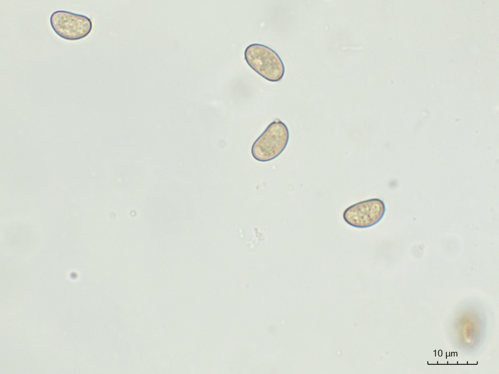 Sporen leicht bohnenförmig, glatt, 8,2-8,8-9,3 x 4,7-5,0-5,3µ