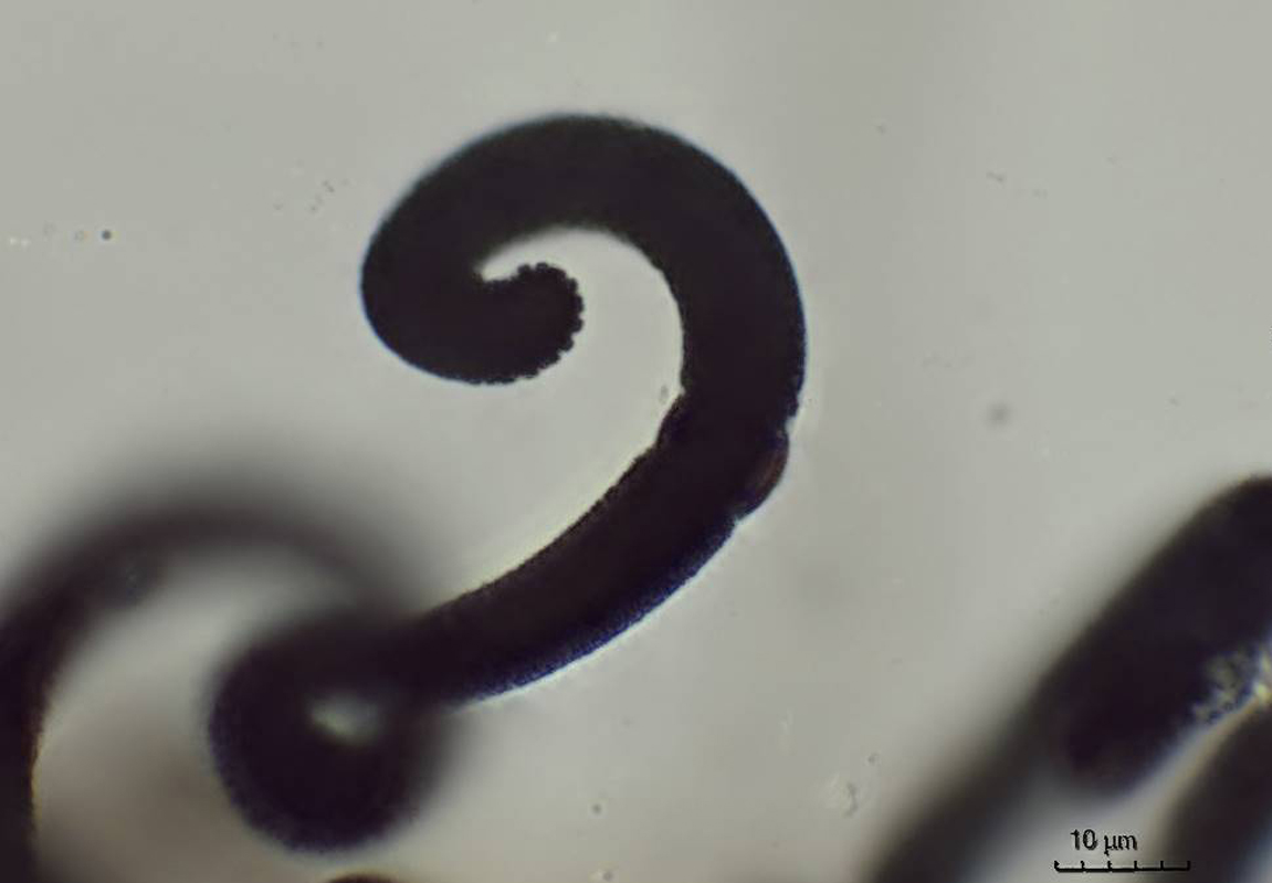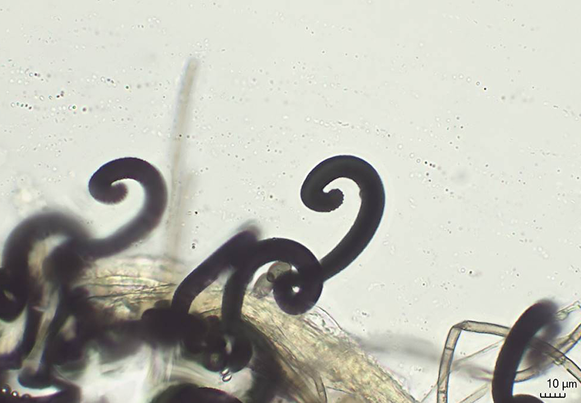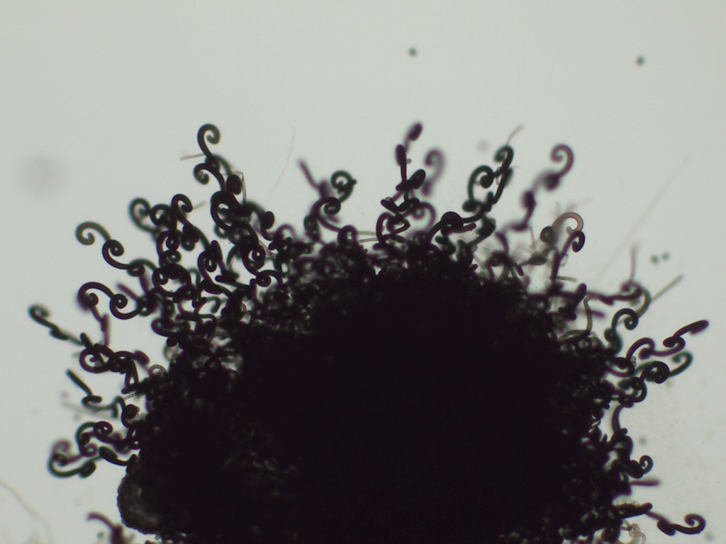 Die terminalen Randhaare sind stark gewunden und undeutlich septiert