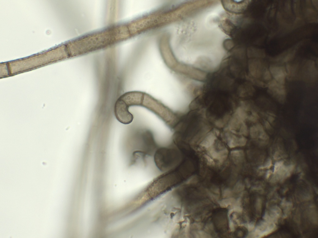 Dazu noch die typischen starren, septierten Perithecienhaare.