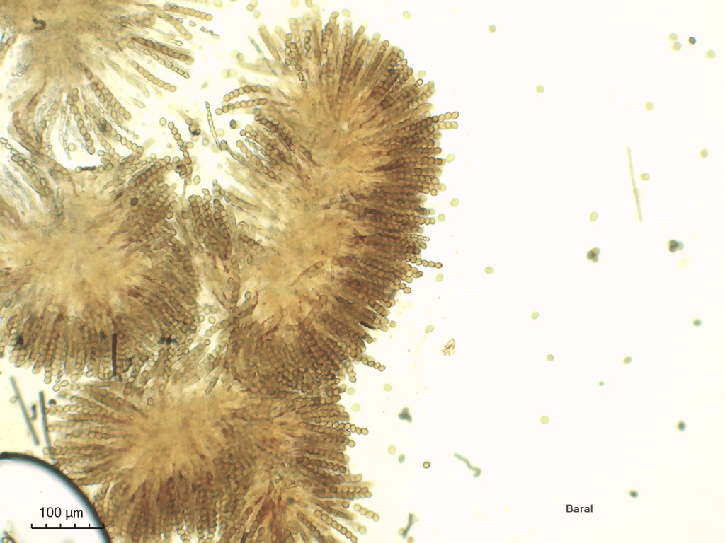 Leider scheint die Koralle noch nicht zu 100% reif zu sein, die wenigen vermessenen Sporen liegen bei 12,3-13,5-15,5 x 4,2-4,4-4,6µ