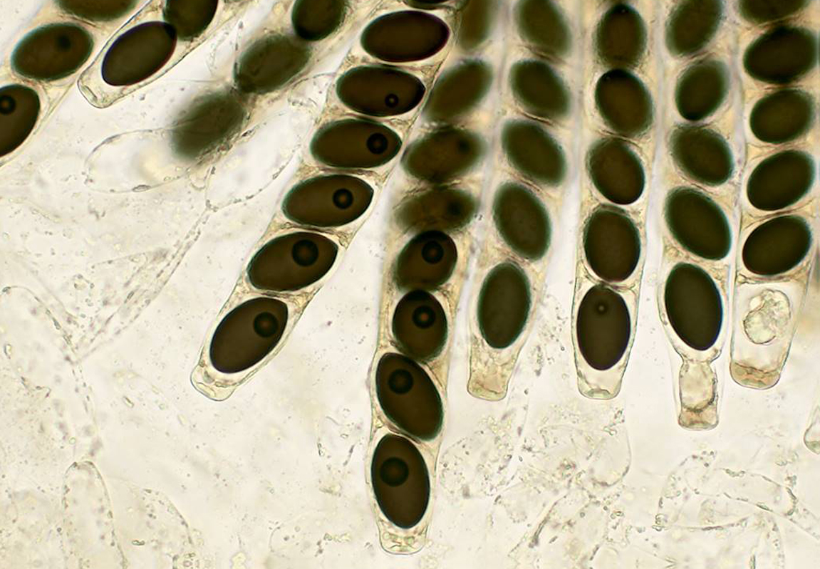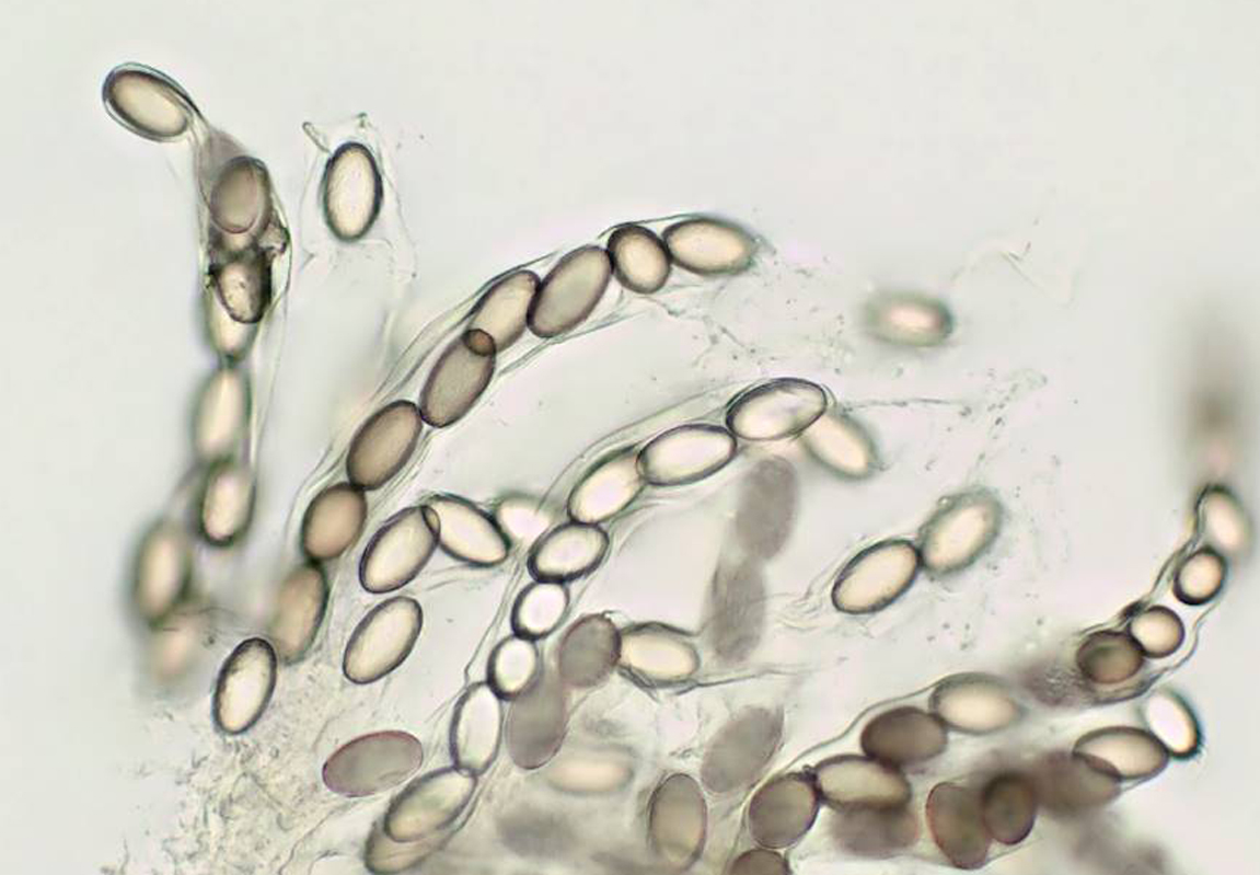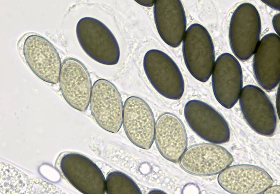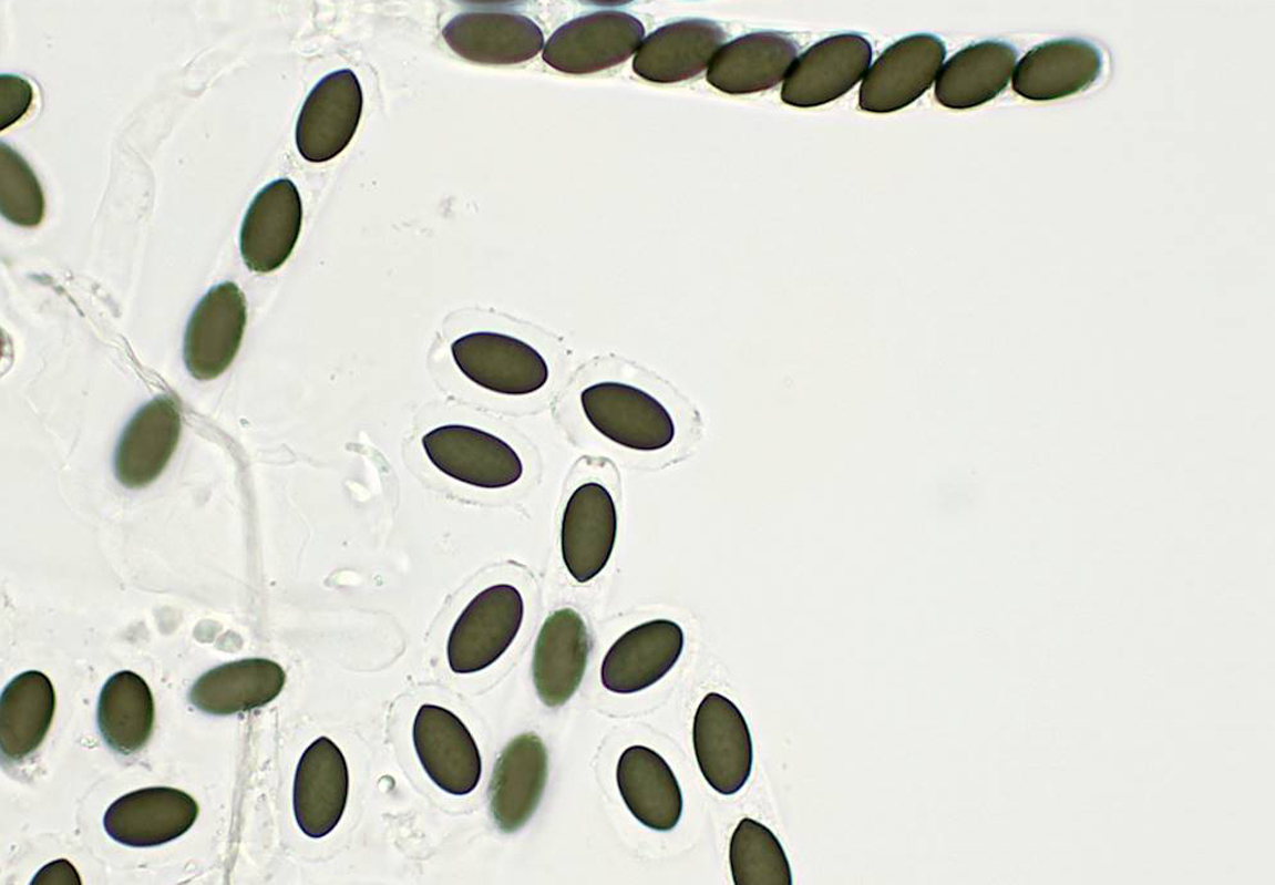 Da die Sporen eine deutliche Keimspalte von Pol zu Pol besitzen, dachte ich zunächst an eine Coniochaeta. Die Perithecien (320-350 x190-200) haben allerdings keine Randhaare.