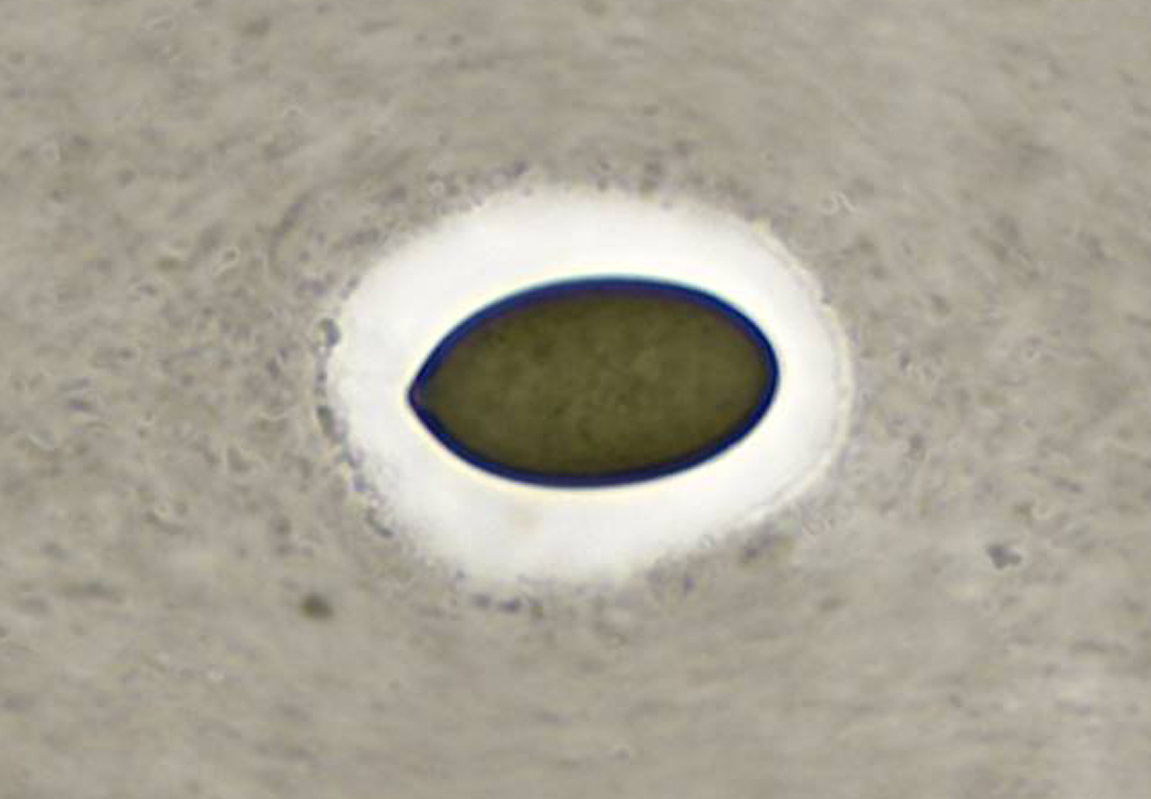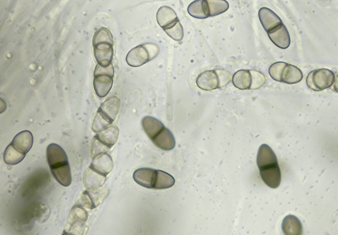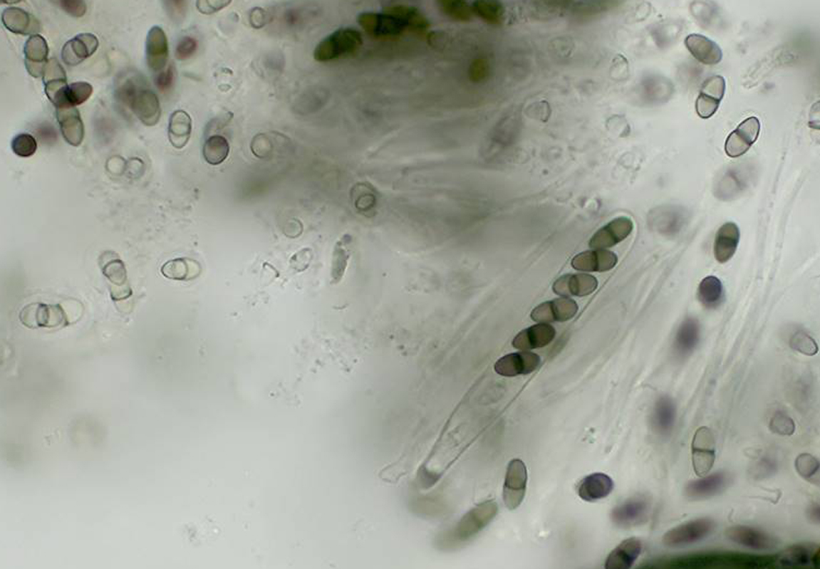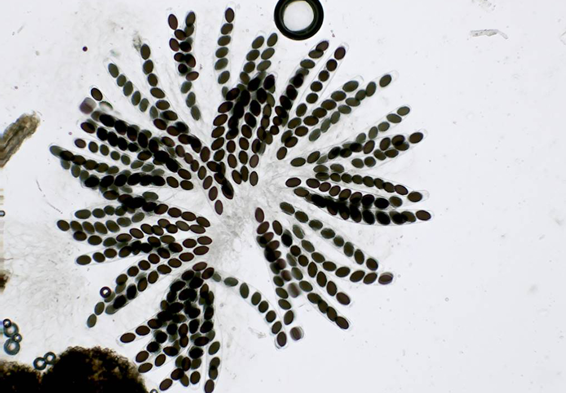 Da die Sporen eine deutliche Keimspalte von Pol zu Pol besitzen, dachte ich zunächst an eine Coniochaeta. Die Perithecien (320-350 x190-200) haben allerdings keine Randhaare.