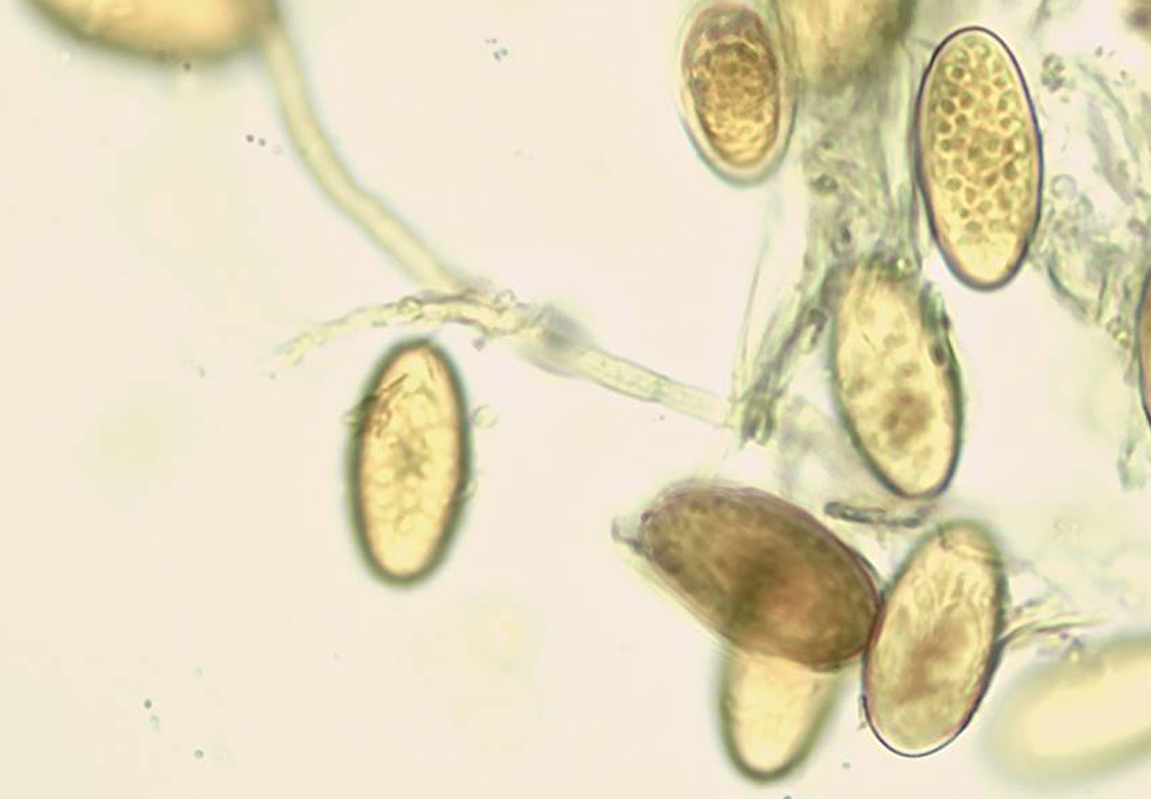 Die Sporen messen 12,6-13,6-15,9 x 6,7-7,2-8,0µ