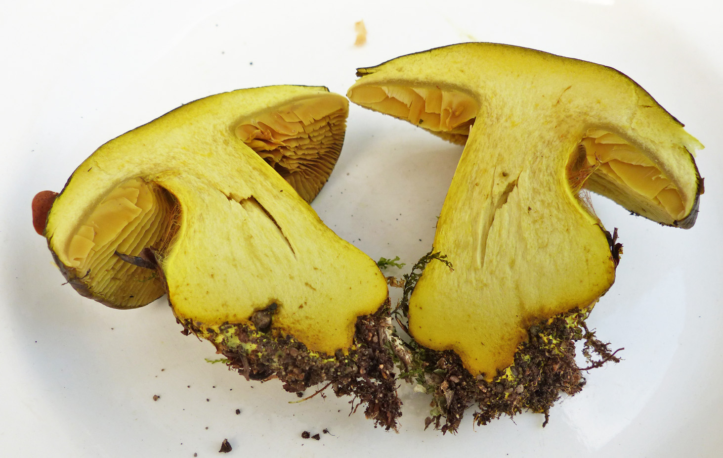 [font="arial, sans-serif"]zu Pos. 3 Maiporling: Hut ocker bis gelblich, mittig etwas vertieft, Geruch pilzig, Stiel filzig,schuppig, bräunlich. Poren sehr klein. Sehr zähes Fleisch. Auf Buche.[/font]