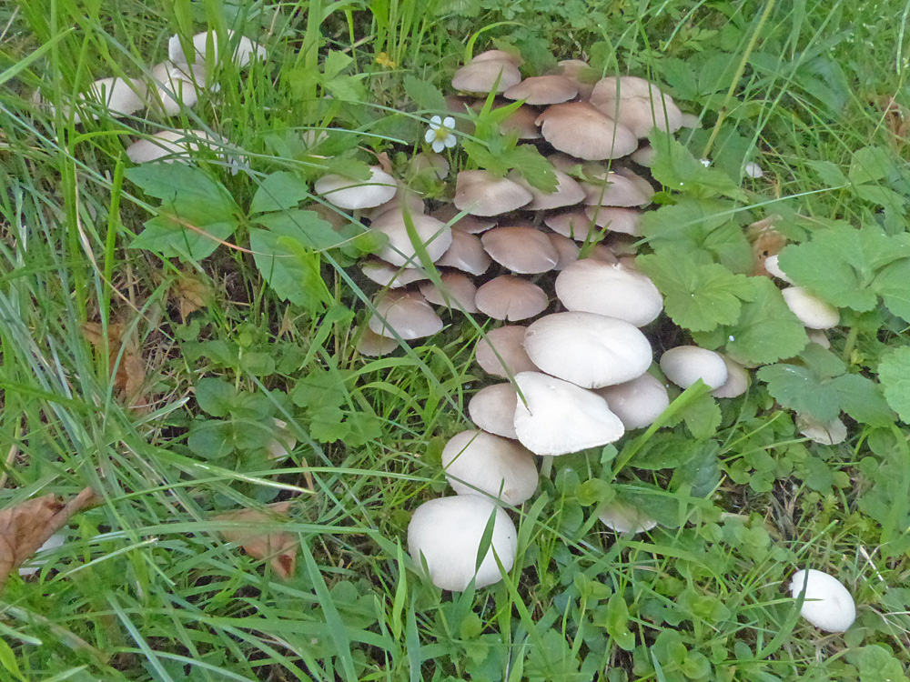 [font="arial, sans-serif"]Zu Pos. 5: Unbestimmter Pilz: Hut bis 10cm Durchmesser flach mit leichtem Buckel, Rand hygrophan ,Stiel faserig und zäh, Geruch grasartig,Lamellen frei und ausgebuchtet, dunkel mit rötlichem Ton, Ring schwach und vergänglich, büschelig wachsend[/font]