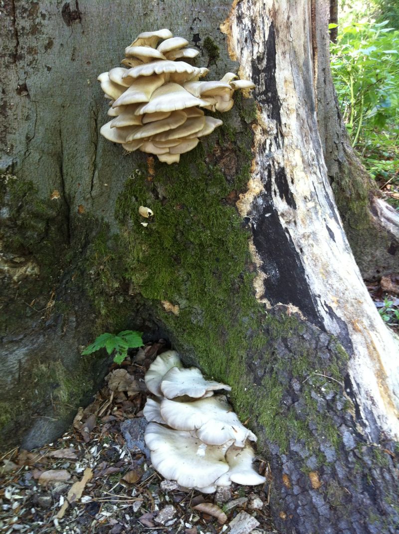 der Lungenseitling ist ein schneeweisser Vertreter der Seitlinge. Die hier gezeigten Austern sind "normal" gefärbt, die Farbe ist bei diesen Pilzen ja sowieso sehr variabel.