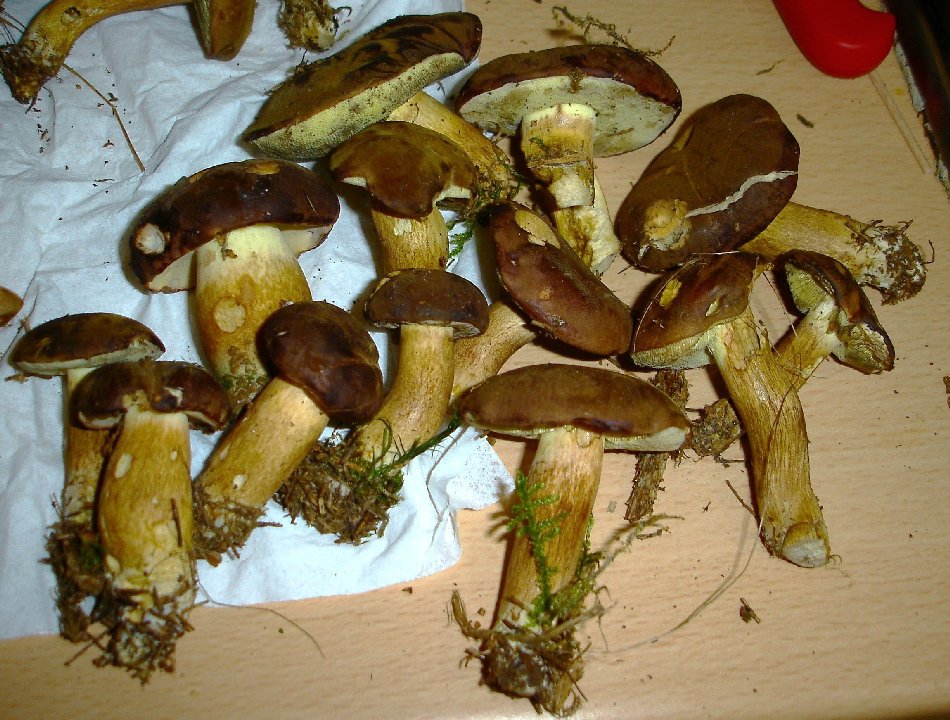 1. Maronen und andere Filzröhrlinge (rechts, hellere Huthaut)