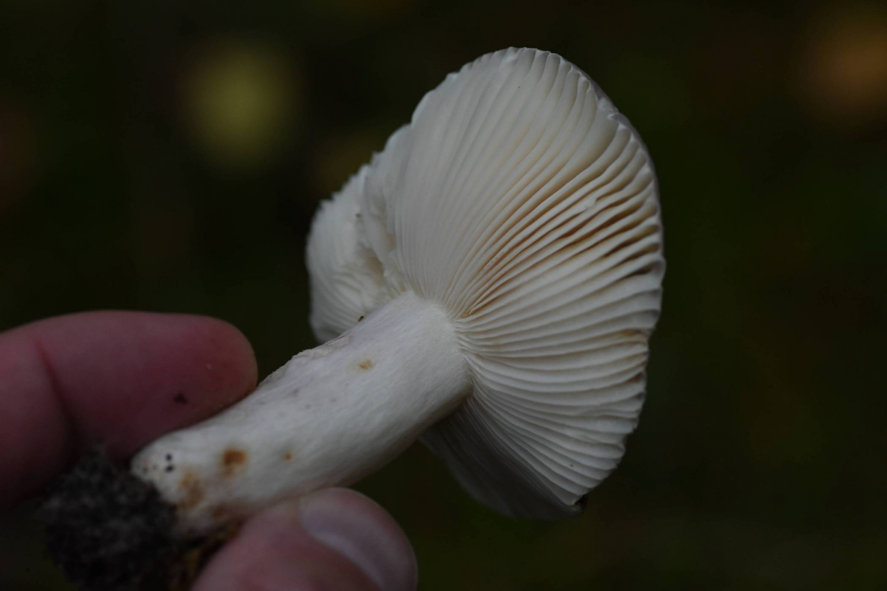 Stiel weiß, nicht sehr fest, "angedeutet" gelb gefleckt, an der Basis z.T. braunfleckig